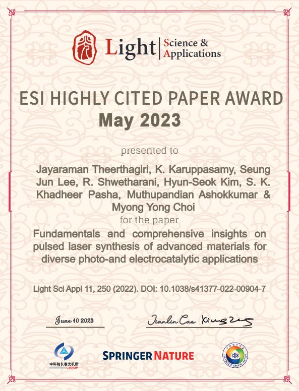 ESI Highly Cited Paper Award 선정 페이지 정보 작성자 광화학연구실 댓글 0건 조회 2,607회 작성일 2023-06-29 17:48 List 본문 ESI Highly Cited Paper Award에 선정이 되어 LSA (Nature.com)에 게재되었습니다. 축하드립니다~! 이전글오예원학생, 제 131회 KCS 대한화학회 포스터상 수상 23.07.26 다음글이혜연, 정시언 학생, 제 140회 KCS 물리화학분과회 포스터상 수상 23.06.27