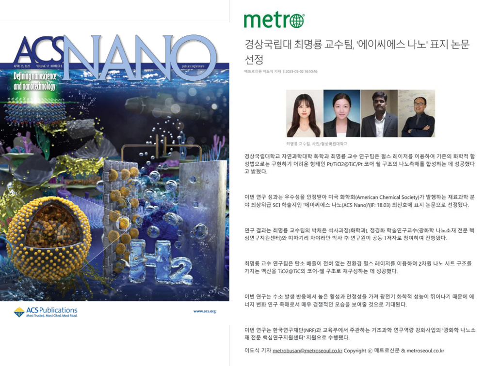 경상국립대 최명룡 교수팀, ≪에이씨에스 나노≫ 표지논문 선정
